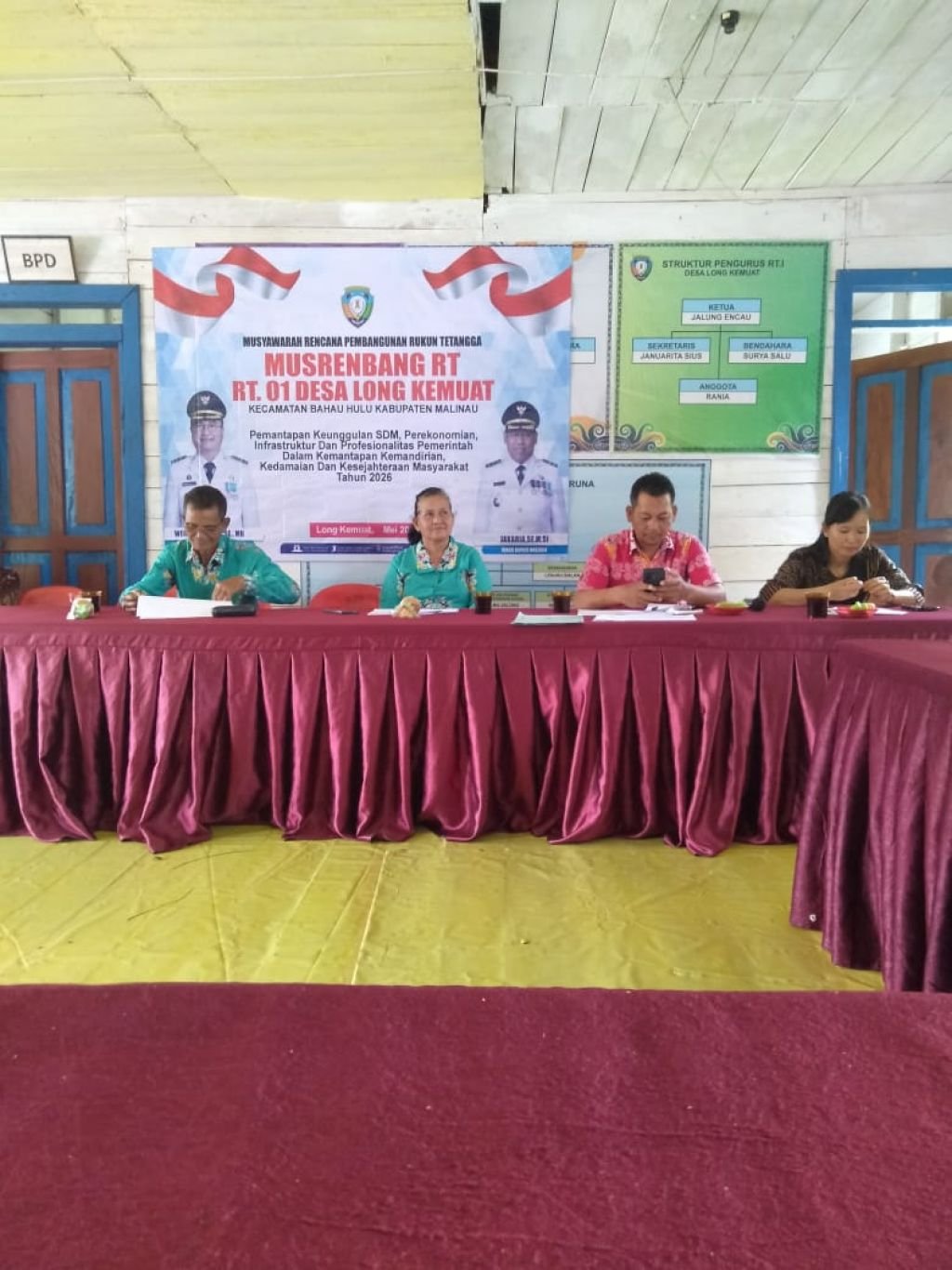 Musrenbang Tingkat RT di Desa Long Kemuat ini diilakukan pada tanggal 10 Mei 2025 dihadiri oleh seluruh masyarakat (BDP, LPM, Perangkat Desa, PKK, Adat, LPHD) dan didampingi oleh Pemerintah Kecamatan.